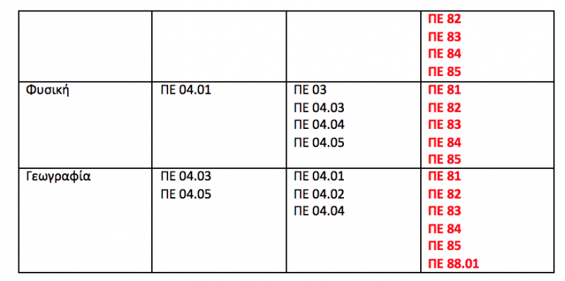 ΠΕ 81 – ΠΕ 82 – ΠΕ 83 – ΠΕ 84 – ΠΕ 85 – ΠΕ 88.01
