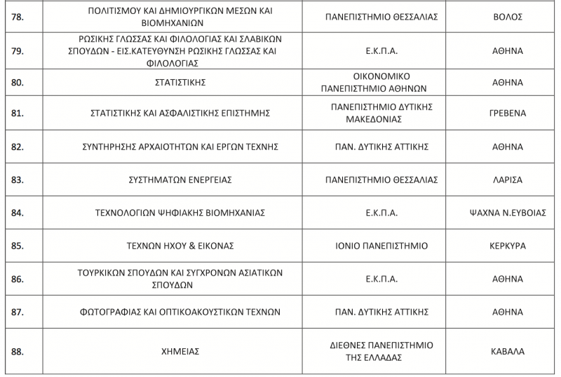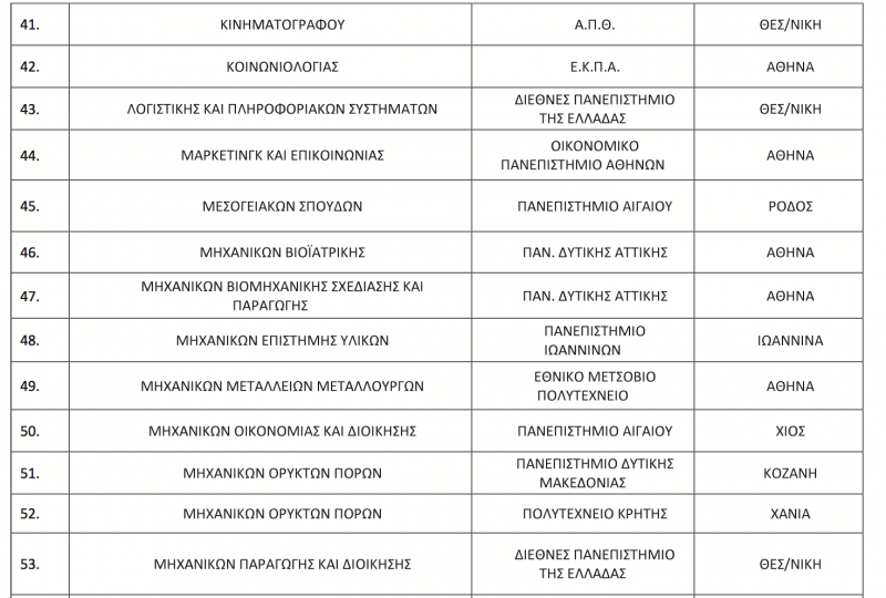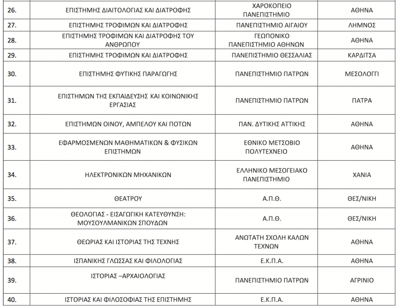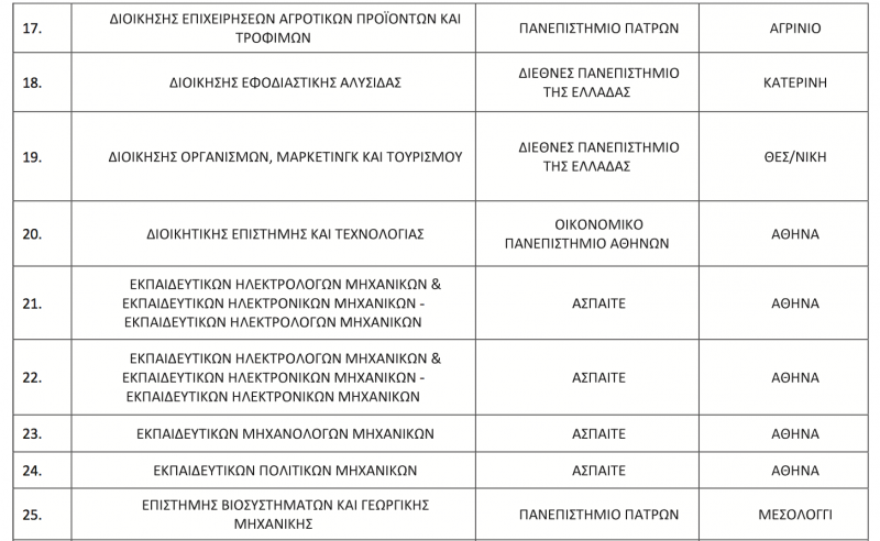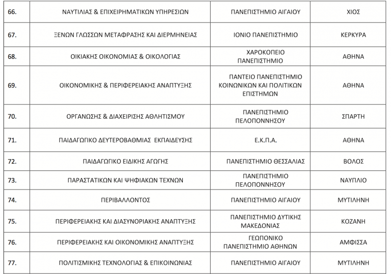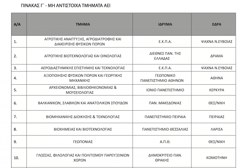 7. Υπάρχουν τμήματα που είναι αποκλεισμένα από το σύστημα μετεγγραφών, λόγω μη αντιστοιχίας