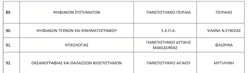 Ναι υπάρχουν και τα τμήματα αυτά είναι τα ακόλουθα 92: