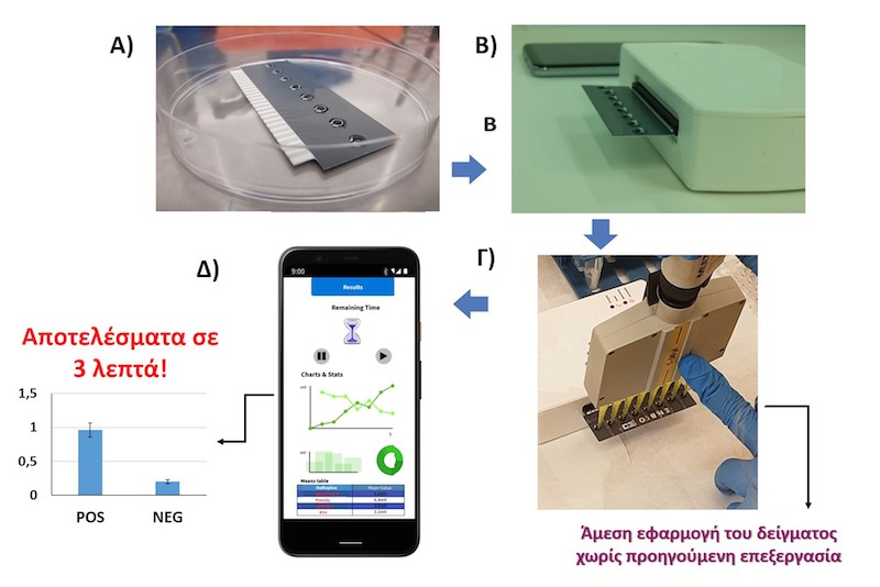 Το Γεωπονικό Πανεπιστήμιο Αθηνών διακρίθηκε για τον βιοαισθητήρα ανίχνευσης της COVID-19, ο οποίος μπορεί να ενσωματωθεί σε μια εύχρηστη πλατφόρμα που περιλαμβάνει ένα κινητό τηλέφωνο ή τάμπλετ και να προσφέρει ταχύτατη (μέσα σε μόνο τρία λεπτά), ευαίσθητη και μαζική ανίχνευση της επιφανειακής πρωτεΐνης-ακίδας S1 του κορονοϊού.