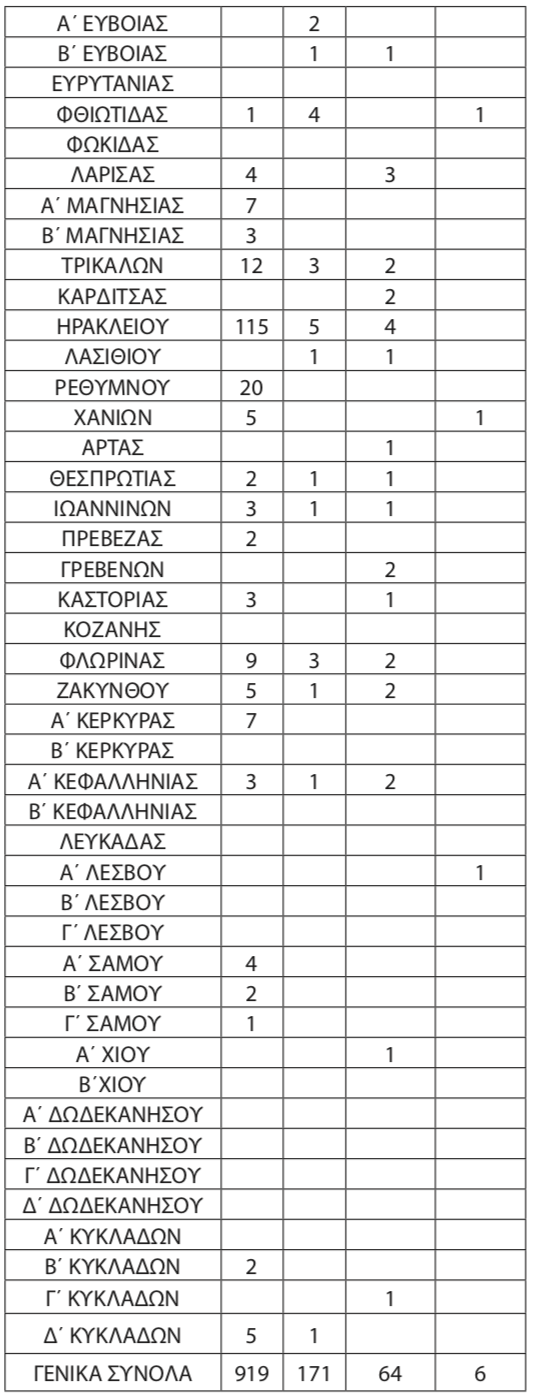 Ειδικότερα οι θέσεις αυτές κατανέμονται ανά περιοχή μετάθεσης ως ακολούθως: