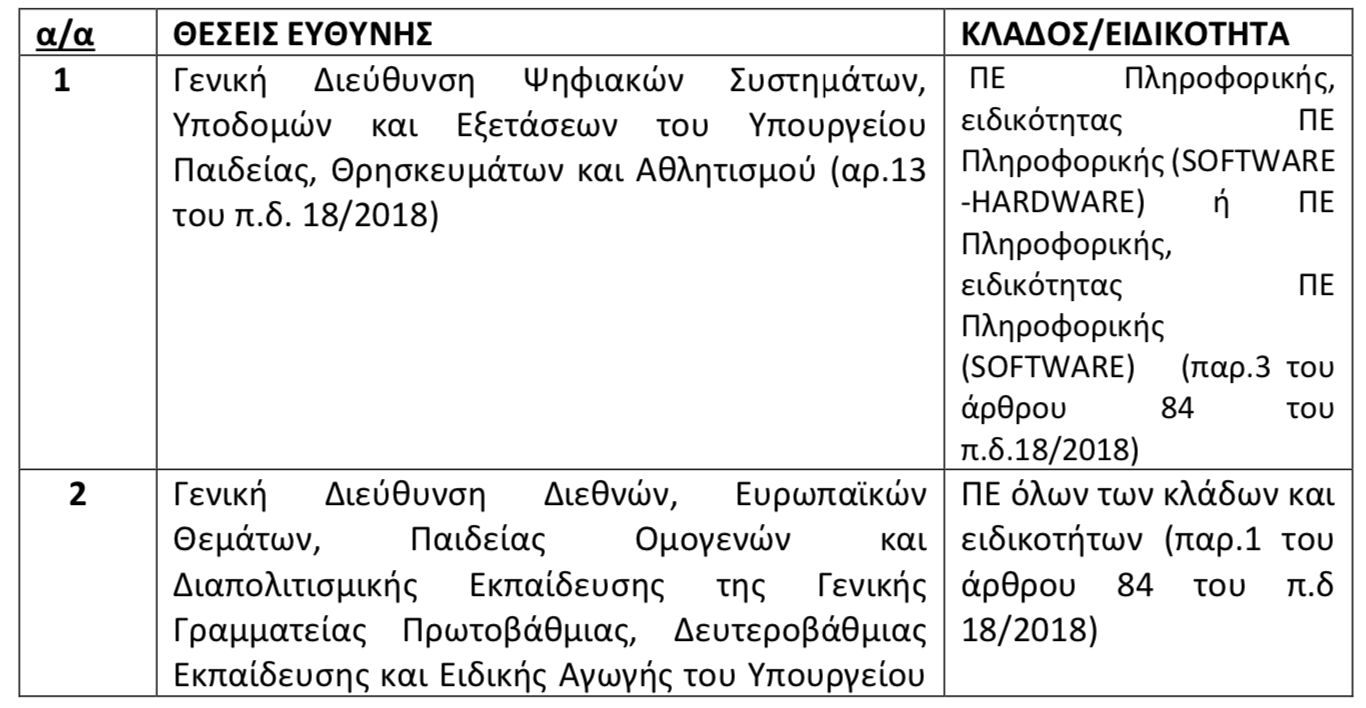 Προκήρυξη πλήρωσης τριών(3) θέσεων ευθύνης επιπέδου Γενικής Διεύθυνσης εξέδωσε το υπουργείο Παιδείας.